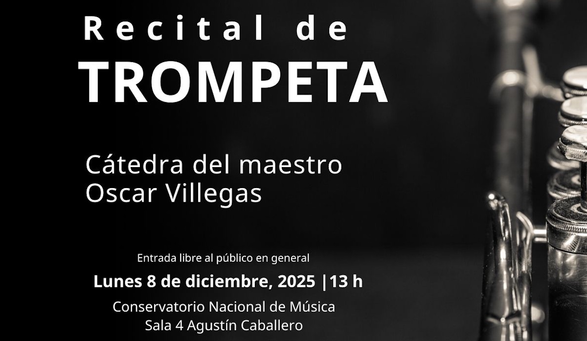 Actividad artística del Conservatorio Nacional de Música. Presenta a las y los estudiantes de la cátedra del maestro Oscar Villegas en un programa que recorre obras representativas del repertorio para trompeta, con énfasis en el desarrollo técnico, la proyección sonora y la interpretación en formatos solistas y de conjunto.