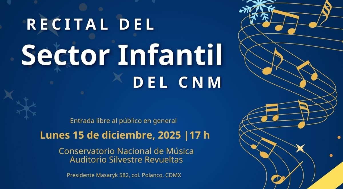 Actividad artística del Conservatorio Nacional de Música. Presenta a estudiantes del Sector Infantil en un programa que refleja los procesos iniciales de formación musical, mediante obras breves y adaptadas a sus distintos niveles, con énfasis en el desarrollo de la musicalidad, la escucha y la experiencia escénica temprana.