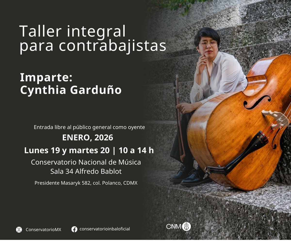 Actividad académico-artística del Conservatorio Nacional de Música. Propone un espacio de trabajo especializado para contrabajistas orientado al desarrollo técnico, sonoro e interpretativo del instrumento, así como a la revisión de aspectos fundamentales de la práctica profesional en distintos contextos musicales.