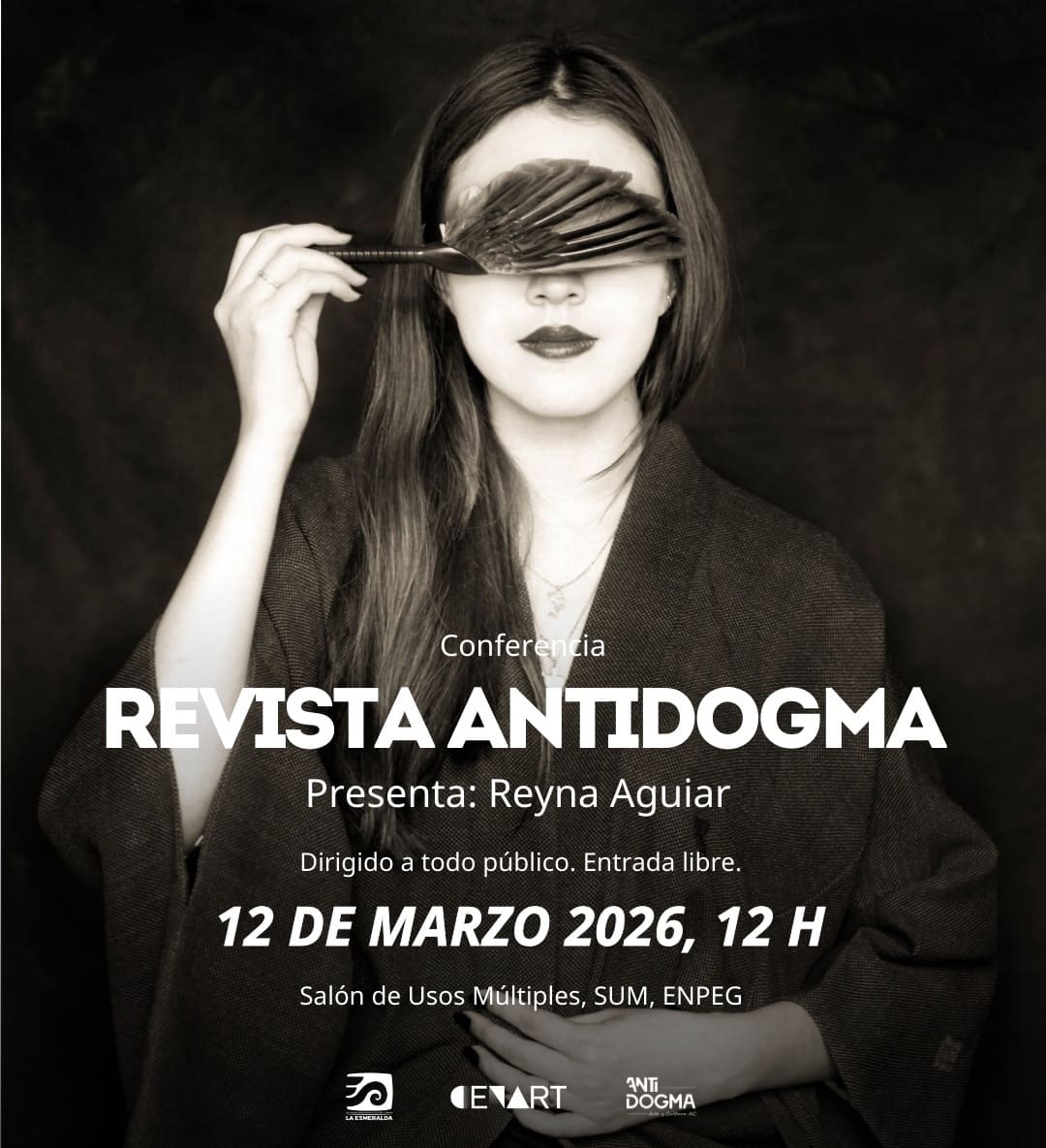 Actividad académico-artística de la Escuela Nacional de Pintura, Escultura y Grabado "La Esmeralda". Presenta una conferencia a cargo de Reyna Aguilar sobre la Revista Antidogma, abordando su contexto de producción, línea editorial, propuestas críticas y su papel en la difusión de pensamiento y prácticas artísticas contemporáneas.