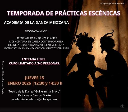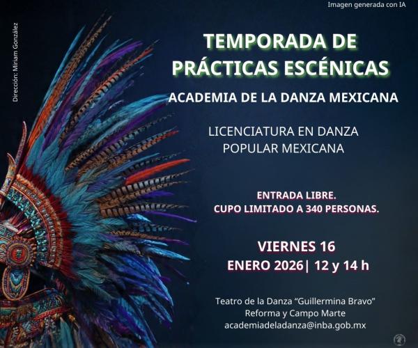 Actividad artístico-académica de la Academia de la Danza Mexicana. Presenta un programa mixto con trabajos escénicos de la Licenciatura en Danza Clásica, Licenciatura en Danza Contemporánea, Licenciatura en Danza Popular Mexicana y Licenciatura en Danza Opción Multidisciplinar, que pone en diálogo diversos lenguajes, estéticas y enfoques coreográficos dentro de la formación dancística.
