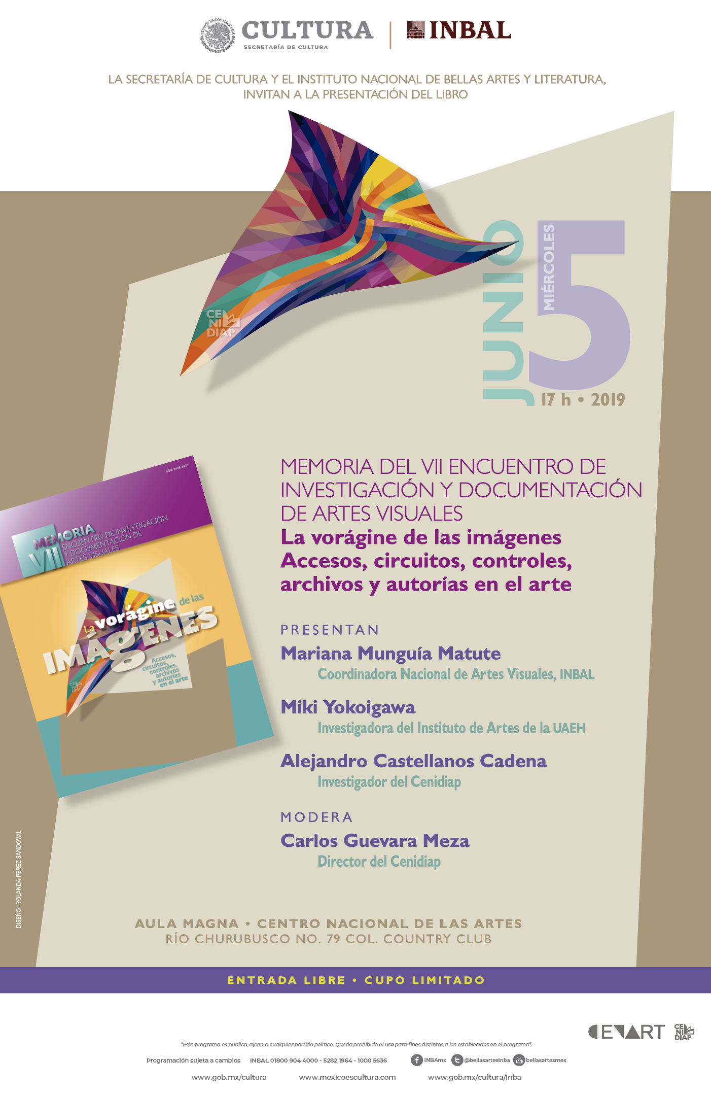 - Miércoles 5 de junio a las 17:00 horas en el Aula Magna José Vasconcelos del Cenart