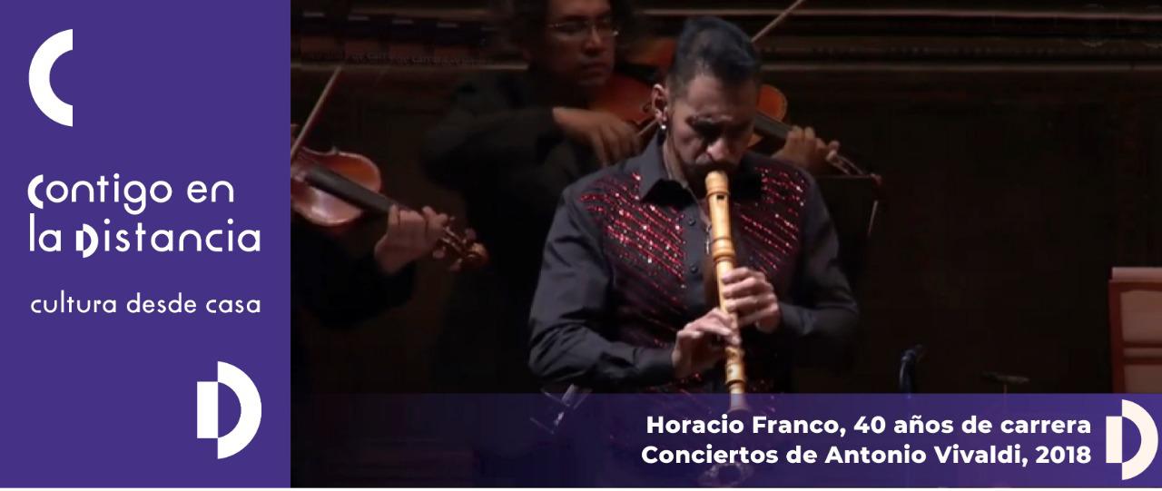 A partir de las 18:00 horas se presentarán los Conciertos de Antonio Vivaldi, con el flautista Horacio Franco, que se realizó en el Palacio de Bellas Artes el 14 de abril del 2018.