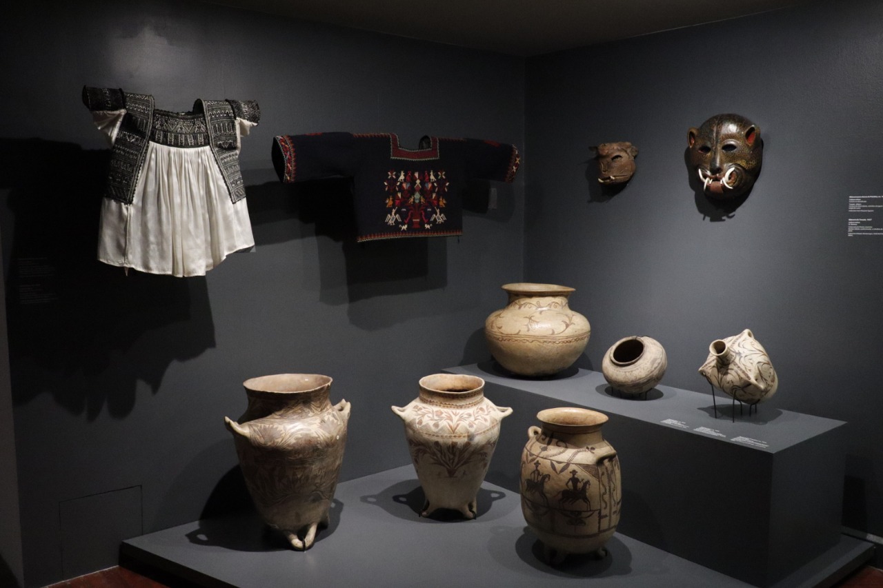 La muestra reúne obras de 45 pueblos indígenas de México y provienen de más de 50 acervos, entre los que se encuentran la Colección “Roberto Montenegro” del Inbal, así como otras provenientes del Museo Nacional de Antropología, del Instituto Nacional de los Pueblos Indígenas, del Museo “Franz Mayer”, del Museo Nacional de Culturas Populares, del Museo Casa Estudio “Diego Rivera y Frida Kahlo”, de Fomento Cultural Citibanamex, del Museo Textil de Oaxaca, del Museo Comcáac y de la Universidad Autónoma de Baja California, así como de particulares.