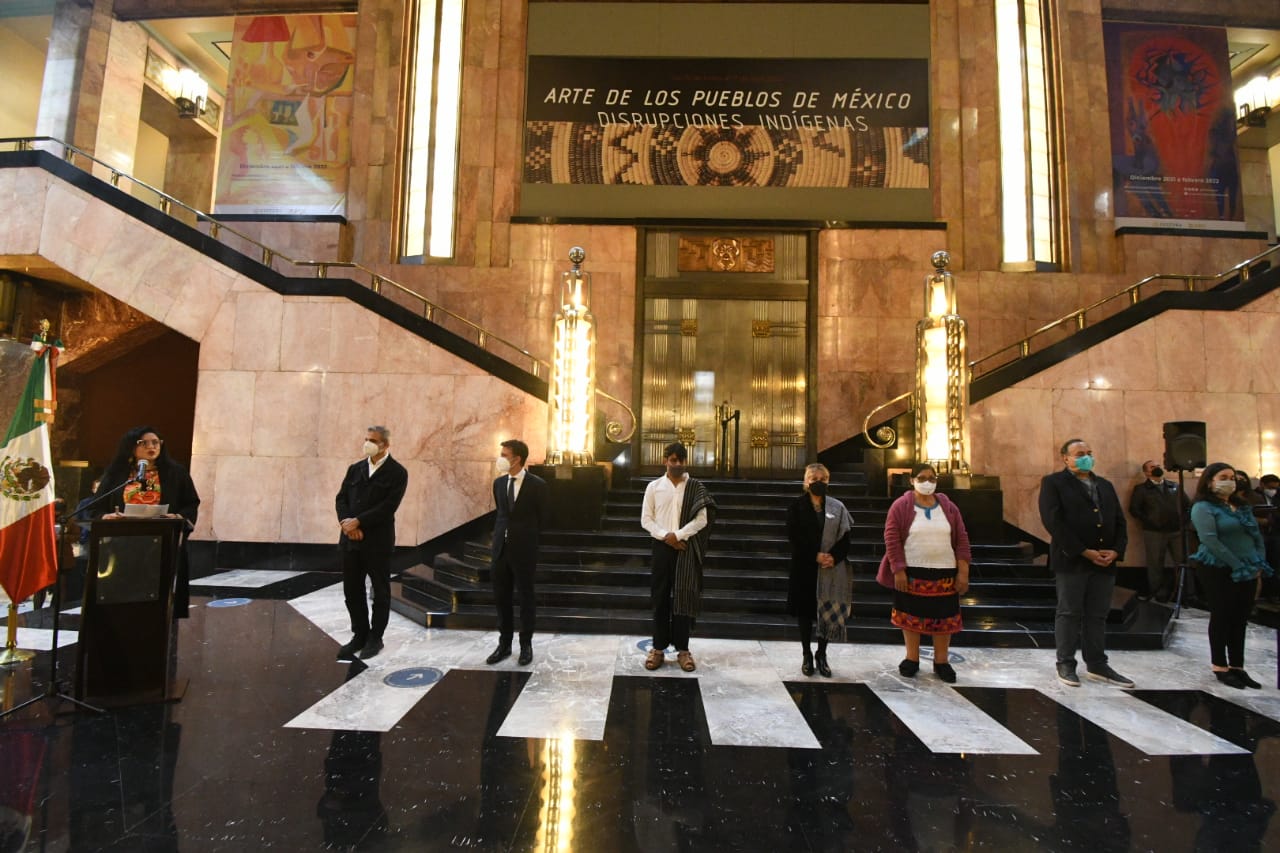 Durante la ceremonia de inauguración, realizada la noche del 26 de enero en el vestíbulo principal del recinto, la encargada de la política cultural del país dio la bienvenida a las culturas indígenas “a su Palacio de Bellas Artes”; ahí, afirmó: “El hecho de que hoy estemos inaugurando una exposición en la Sala Nacional de Bellas Artes, donde nunca se había expuesto con esta grandeza y con el señorío que contiene el arte de los pueblos, es un hecho histórico”, afirmó.