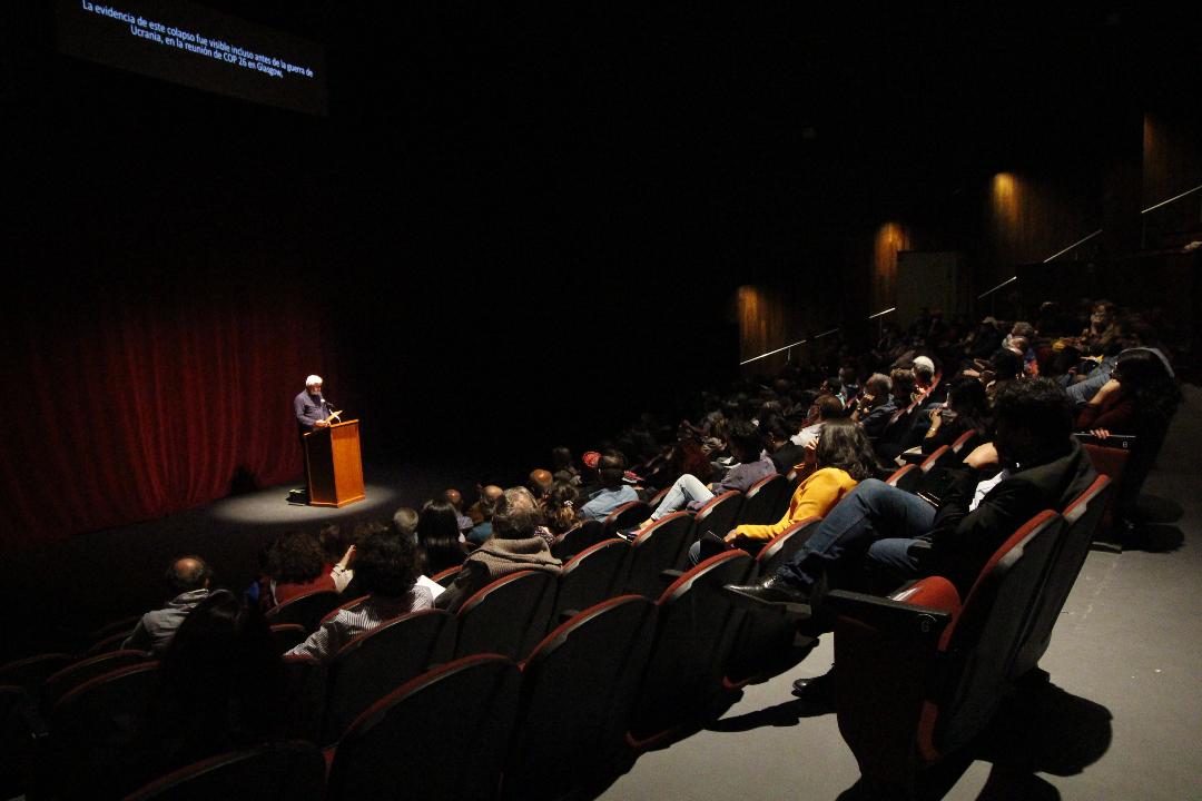 El escritor planteó en su intervención una inevitable crisis ecológica de la humanidad, centrada más que nada en un problema fundamentalmente geopolítico, en el que sitúa a Occidente y su cultura de la violencia y la dominación en el centro de los problemas contemporáneos.