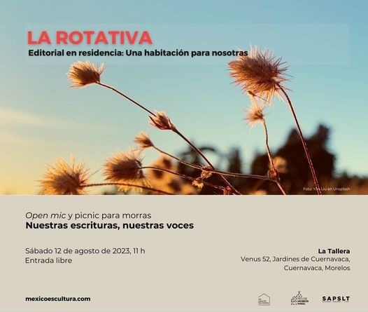 Esta actividad está organizada por la editorial Una habitación para nosotras, residente en La Rotativa de La Tallera, a cargo de la artista Natalia TodavÃa, coordinadora de este curso denominado Open mic y Picnic para morras.