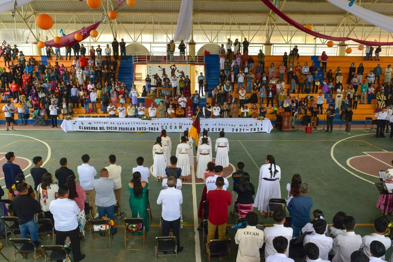La ceremonia de clausura del ciclo escolar 2023-2024 fue organizada con meses de anticipación por la directiva del Cecam, que encabeza la maestra Ofelia Orozco, en donde la participación comunitaria es un valor fundamental que se inculca en este centro educativo enclavado en la zona Mixe de Oaxaca.