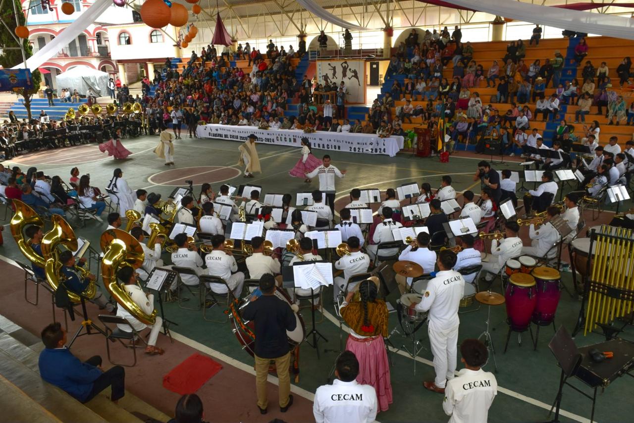 Como parte de la celebración del cierre de ciclo escolar entre música y fuegos artificiales, la Banda Filarmónica Oficial del Cecam interpretó sones y jarabes mixes, y la danza del Cecam. Asimismo, participaron las bandas Filarmónica Infantil, Filarmónica de Tultepec y la Rondalla de Inducción Musical IA, bajo la dirección de Héctor Suriel Vásquez Díaz, así como el Ensamble Musical formado por los alumnos de Técnico Profesional en Música Tradicional del Cecam, “Daymaz Band”, con la interpretación de las piezas Ódiame, de Rafael Otero López, con arreglo de Lenin Daniel Luis Pérez, y Qué agonía, de Ángela Aguilar, Pepe Aguilar y Gussy Lau, con arreglo de Miguel Ángel Jiménez Ríos.