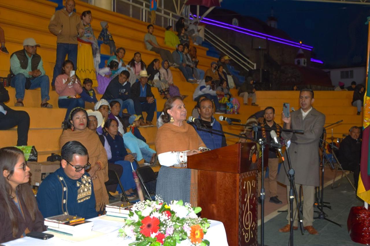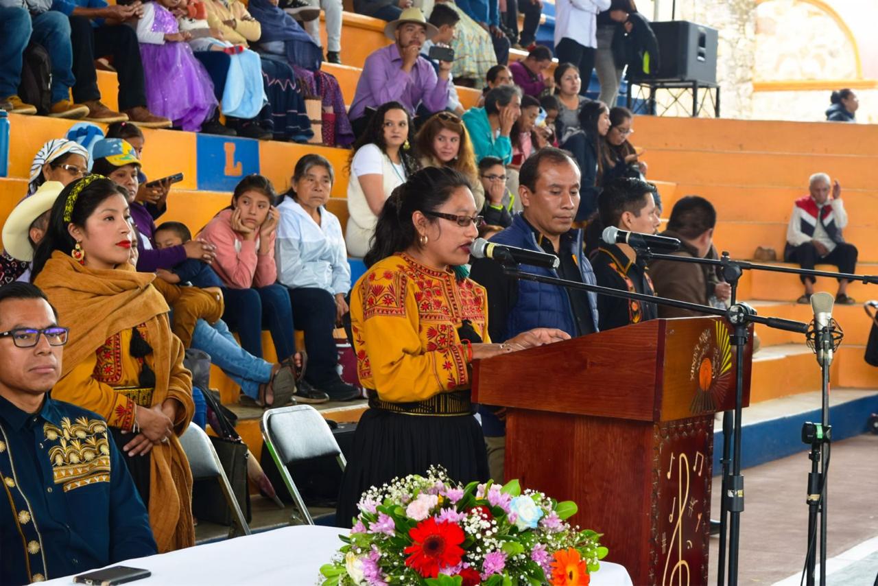 Así, en este festejo que se realizó en la cancha de básquetbol, sitio de gran significado para la vida en comunidad de Tlahuitoltepec, estuvieron presentes la presidenta municipal suplente, Elena Vázquez; la regidora de Educación y Cultura, Carmelita Vásquez Hernández; la directora general del Inbal, Lucina Jiménez López; el coordinador de Patrimonio Cultural y Educación, Gustavo Torres Cisneros en representación del director de Instituto Nacional de los Pueblos Indígenas, Adelfo Regino Montes; el director del Cedart Miguel Cabrera, de Oaxaca, Pedro Lemus, así como la subsecretaria de Planeación Estratégica de la Secretaría de Culturas y Artes de Oaxaca, Carmen Sánchez Parada, así como representantes de escuelas y la comunidad de Tultepec.