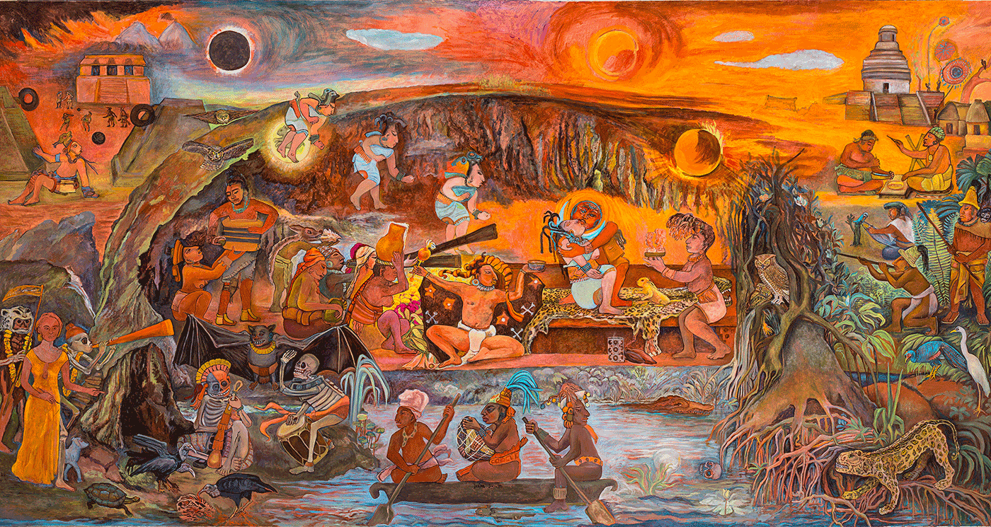 El primer recorrido de estas visitas guiadas, abiertas al público en general de manera gratuita, comienza a las 12 horas en el Área de Murales del museo. La finalidad es adentrar a los visitantes en la vida y obra de la artista guatemalteco-mexicana Rina Lazo (1923-2019) y en el mural Xibalbá, el inframundo de los mayas, donde la artista plasmó su interpretación del mundo maya, inspirada en el Popol Vuh, historias prehispánicas y elementos de su identidad.