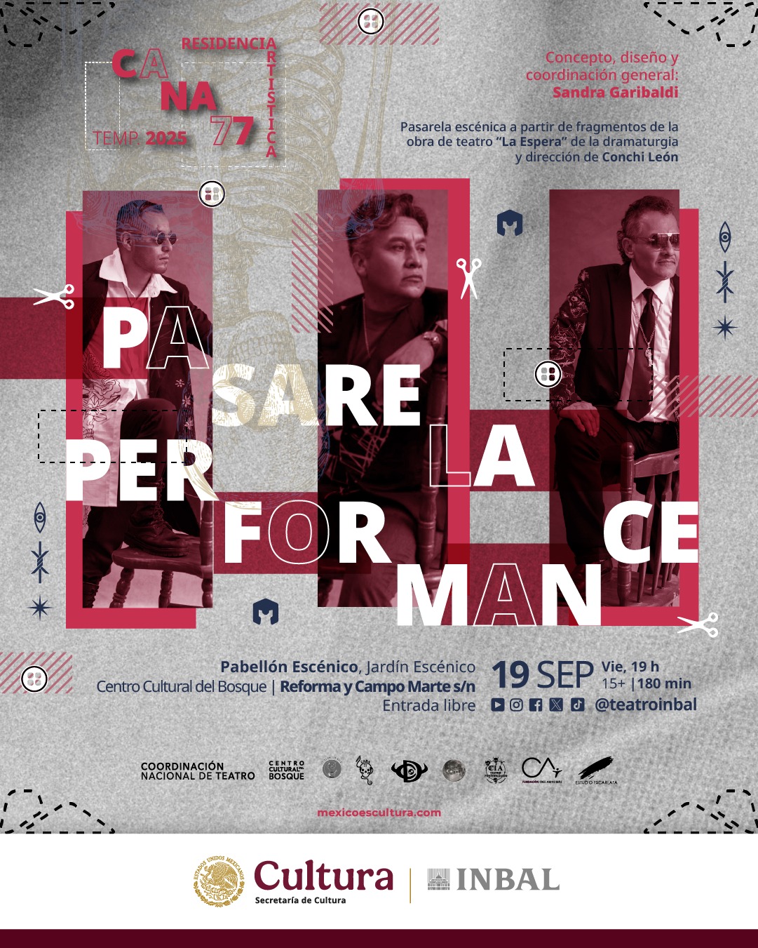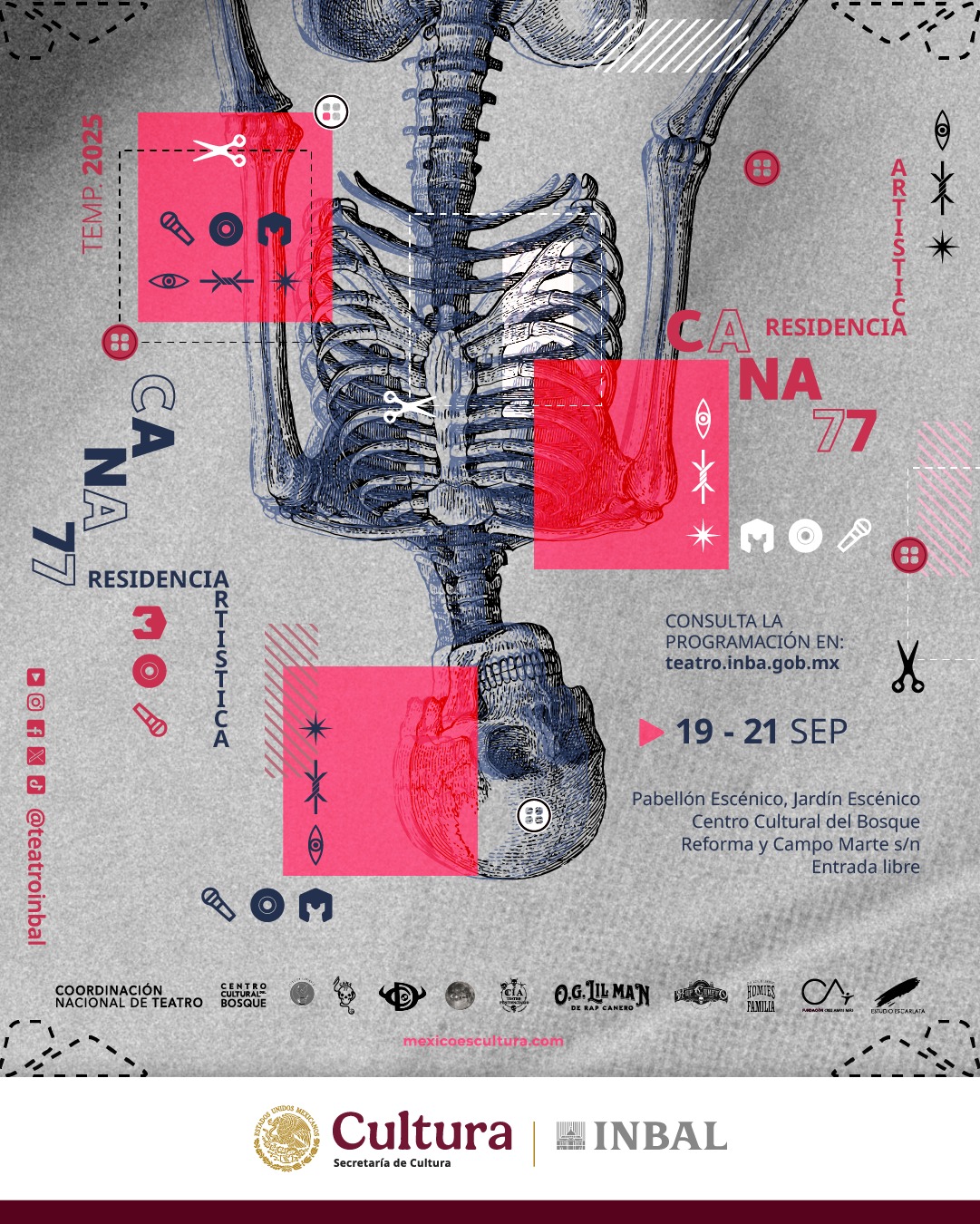 La Secretaría de Cultura del Gobierno de México y el Instituto Nacional de Bellas Artes y Literatura (INBAL), a través de la Coordinación Nacional de Teatro, en colaboración con Estación Garibaldi, Atelier de costura y diseño y el Taller de Serigrafía de la Compañía de Teatro Penitenciario “Calacas y Diablitos”, presentan Residencia Cana77, un proyecto de moda social bajo la coordinación general de Sandra Garibaldi, con la participación de Not Your Mamacitas y el Colectivo Arte Arma.