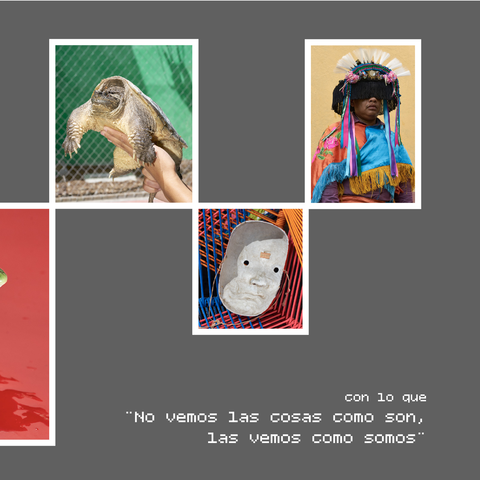 A través de una mirada introspectiva y sensorial, la exposición plantea cómo la imaginación y la realidad se entrelazan en nuestra mente. Propone una analogía donde la humanidad, como el anfibio dorado, transita entre dos realidades: la externa e interna, física y mental, sensorial e imaginada. Sus fotografías muestran similitudes visuales y yuxtaposiciones, reflejando un mundo de especímenes y una variedad de formas que van desde la imagen microscópica hasta el paisajismo.