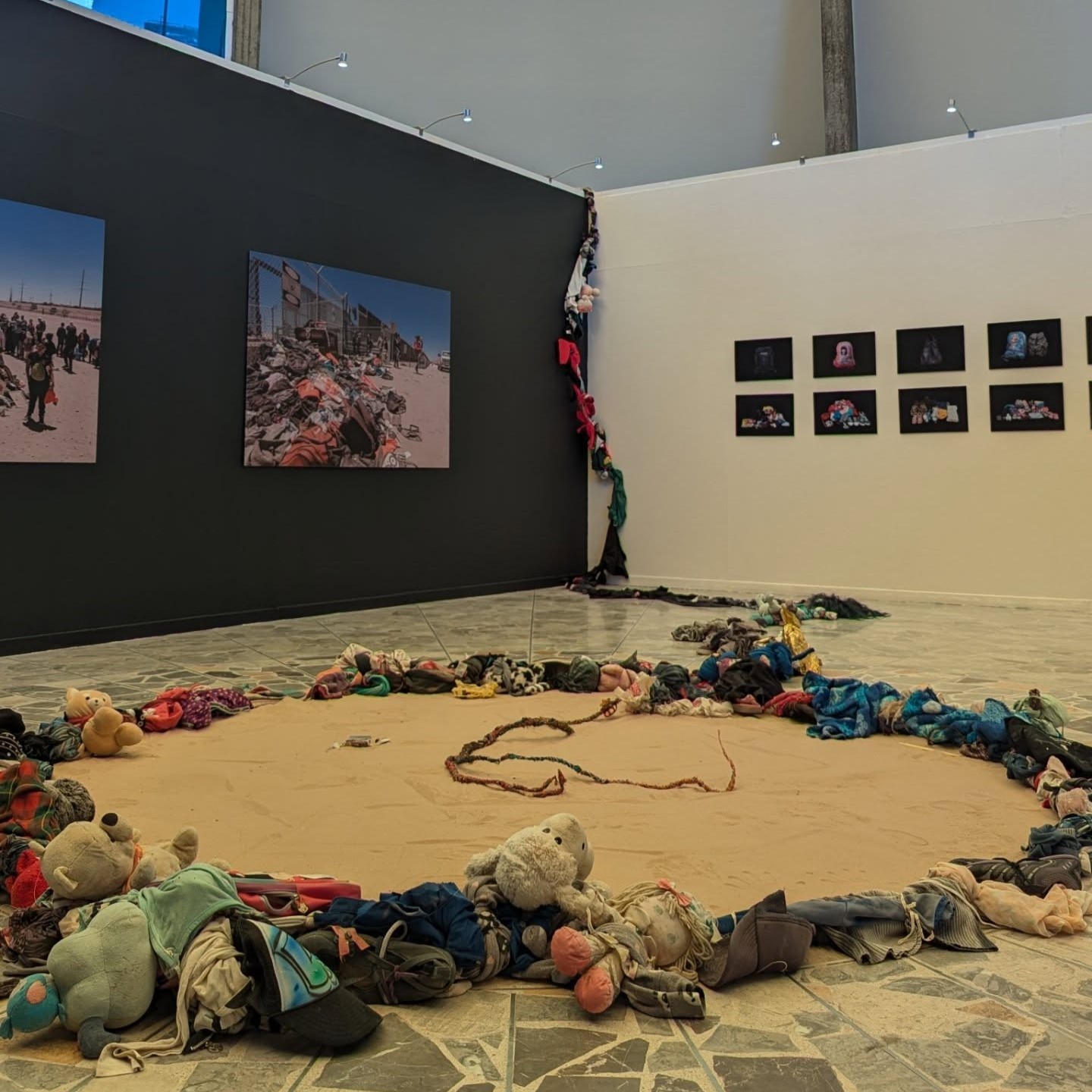 La muestra invita a reflexionar sobre la migración y sus implicaciones personales, a través de un proyecto que explora la marca geográfica y la huella en la memoria de las personas que transitan diariamente entre la frontera con Estados Unidos. A través de la fotografía, la ilustración, la composición musical, el video, la poesía y herramientas gráficas, el proyecto explora el viaje de este grupo de migrantes que cruzan hacia un mundo ajeno con esperanza, miedo o resistencia.