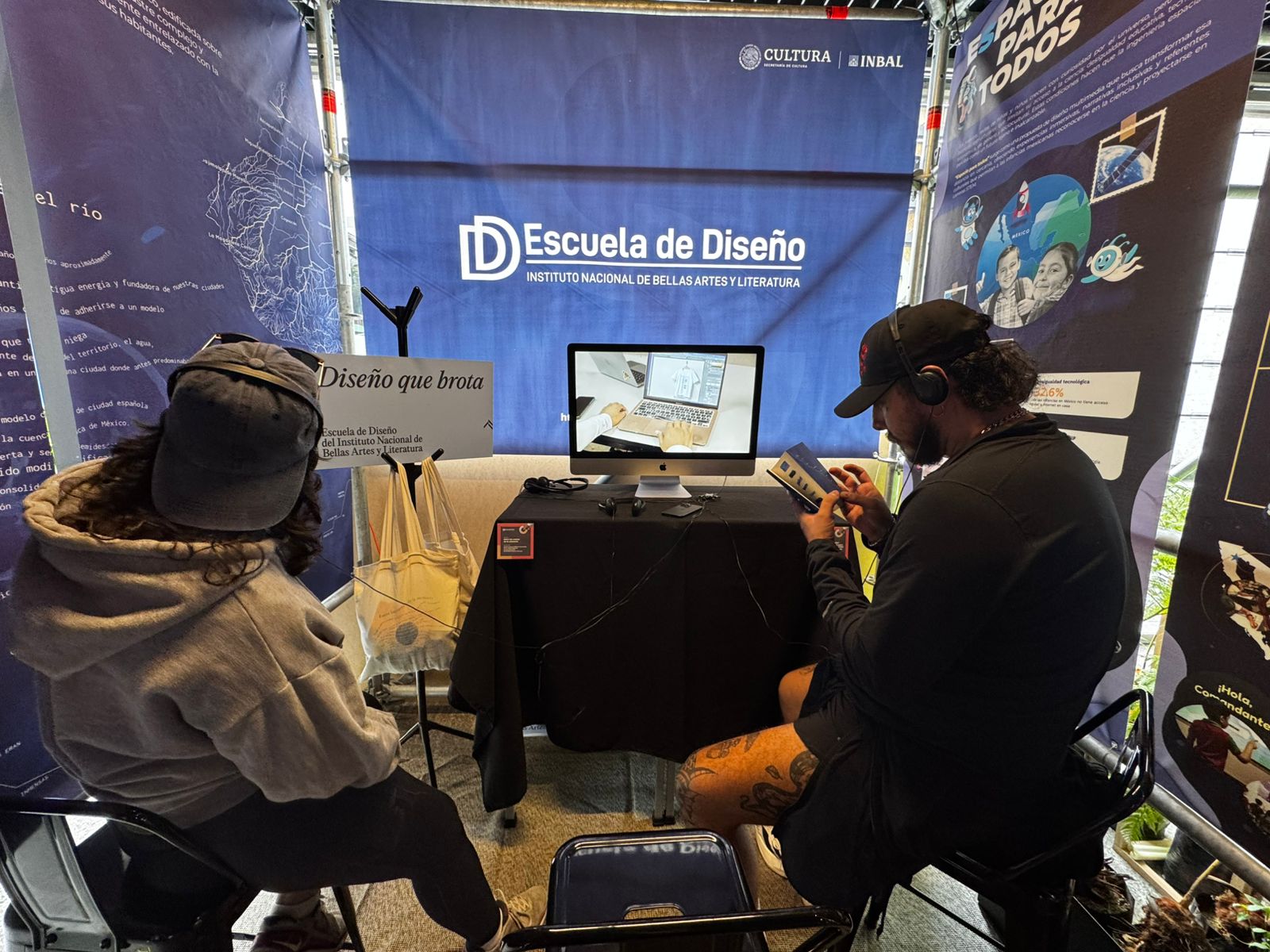 La producción, gestión y vinculación del estand cuenta con el acompañamiento de las y los docentes Itzaé García, Jonathan Viveros e Israel Aldana, quienes respaldan la presentación de los proyectos y subrayan la importancia de integrar el diseño con la reflexión sobre memoria y nuevas tecnologías.
