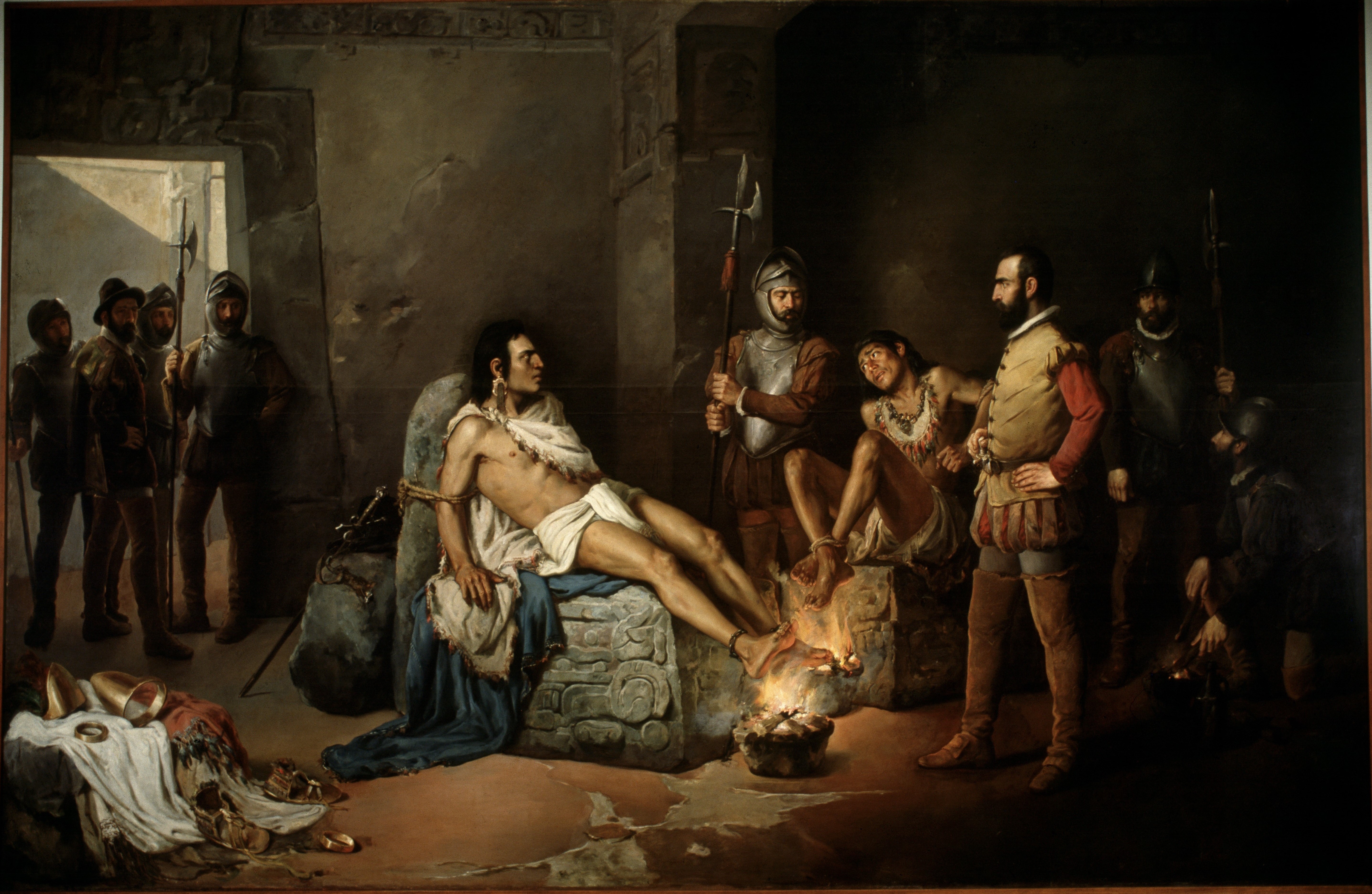 “La primera pertenece al género mayor de la pintura académica: la histórica. Habla sobre los inicios de la construcción de la identidad nacional a partir del personaje de Cuauhtémoc, quien se convierte en un mártir histórico, a través del cual se expresa la pérdida que implicó la rendición de Tenochtitlan en 1521. La obra refleja una reinvención de la historia, en un momento donde la mirada se vuelca hacia el pasado precolombino como origen del México independiente”, explicó Martínez.