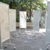 - Los proyectos se despliegan en tres espacios del recinto, que ofrecen diferentes lecturas a cada exposición: la librería, la terraza y el segundo piso