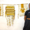 - La alumna del primer semestre de licenciatura de Arte Textil, Evelyn García Bedolla, presentó una pieza, elaborada con fibras naturales, lana y cabello humano