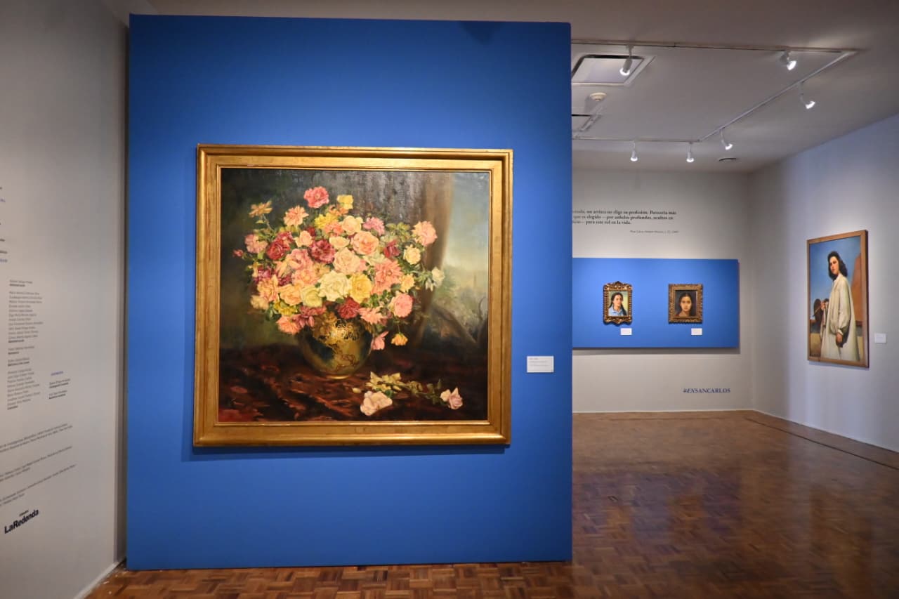 La exposición también incluye obras que parten del género conocido como naturaleza muerta o bodegón. La pintura de flores fue un motivo recurrente entre varios artistas de la primera mitad del siglo XX. En las pinturas florales de Pilar Calvo destaca su paleta vibrante y su virtuosismo técnico. La combinación, presente en la mayoría de sus obras, de flores abiertas, capullos y pétalos caídos se inserta en la tradición iconográfica que los utiliza como metáforas del paso del tiempo y del contraste entre la vida y la muerte.