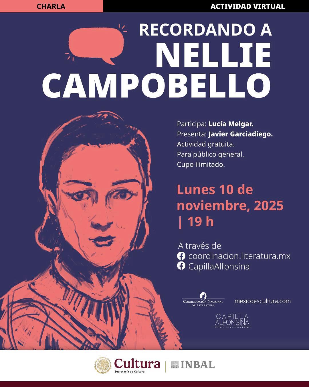 En el marco del 125 aniversario del natalicio de la escritora, bailarina, coreógrafa, docente y poeta Nellie Campobello, que se conmemora el 7 de noviembre, la Coordinación Nacional de Literatura (CNL) y la Capilla Alfonsina (CA) transmitirán la charla virtual Recordando a Nellie Campobello el lunes 10 de noviembre, a las 19 horas, por sus canales de Facebook.