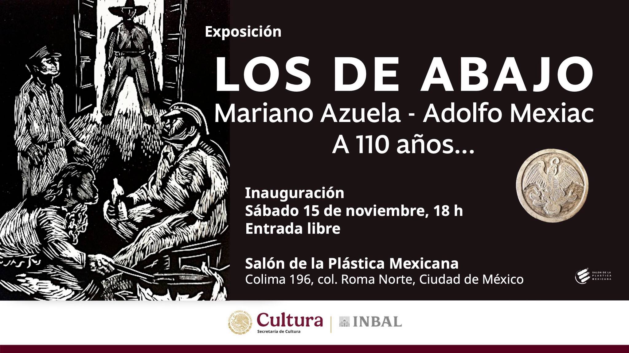 En el Salón de la Plástica Mexicana (SPM) se inaugurará la exposición Los de abajo. Mariano Azuela – Adolfo Mexiac. A 110 años…, el sábado 15 de noviembre. El proyecto conmemora el aniversario de esta obra fundacional mediante ilustraciones de Adolfo Mexiac, a través de 10 estampas realizadas con la técnica de linóleo en 2018.