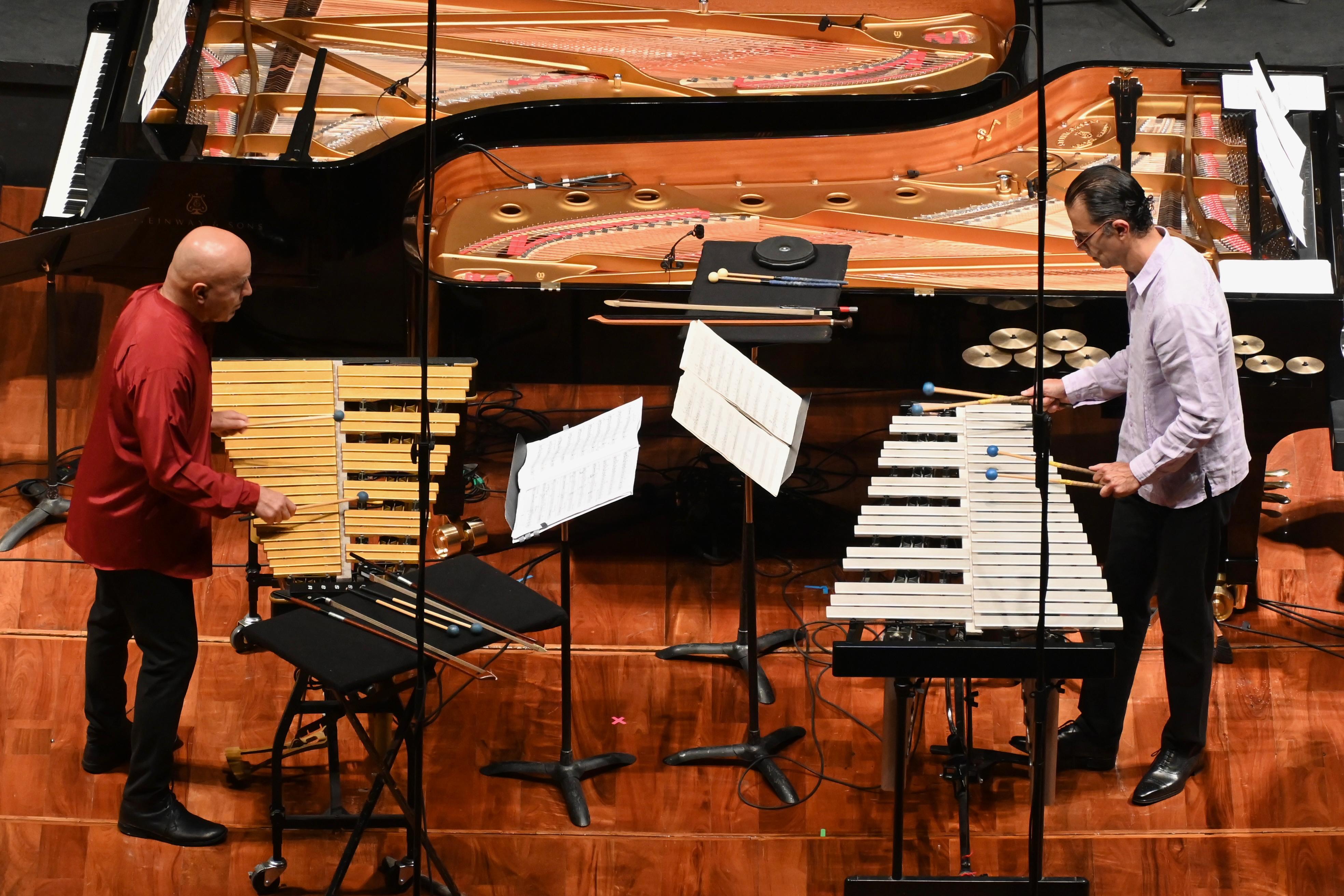 • El ensamble de percusiones ofreció un viaje sonoro que recorrió cien años de experimentación musical, desde las Rítmicas, de Amadeo Roldán;  Ionisation, de Edgard Varèse; Sextet, de Steve Reich, hasta el Ballet Mécanique, de George Antheil
