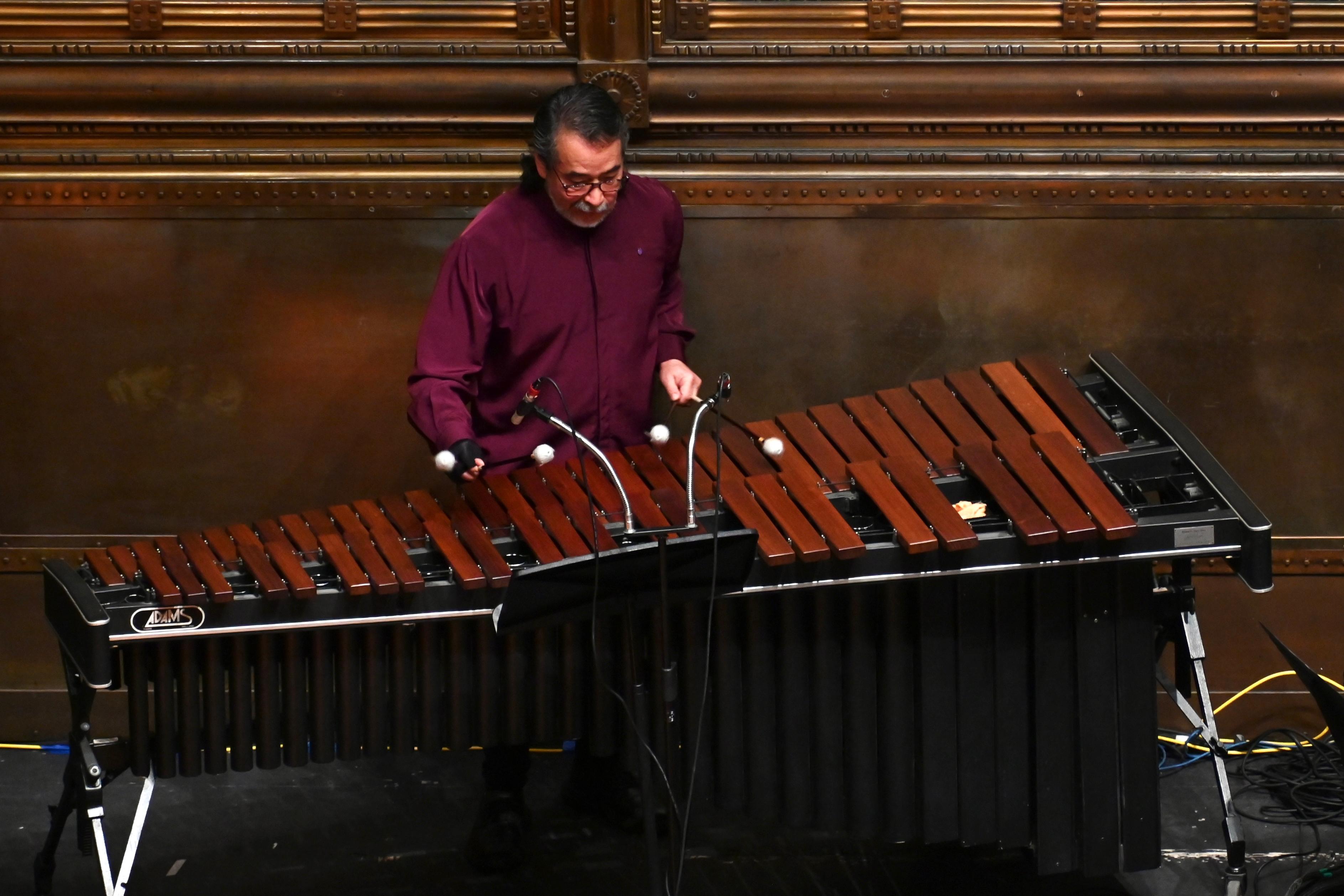 Tras el intermedio, director artístico de Tambuco, contextualizó lo que se escuchó y lo que venía: “Acaban de escuchar ustedes las dos primeras piezas que se escribieron para instrumentos de percusión hace casi 100 años… 1930 las Rítmicas, de Amadeo Roldán, y 1931 Ionisation, de Edgard Varèse. Y aunque diferentes los colores, Roldán nos remite a nuestro concepto de ritmo más asociado con el pulso, hasta con la danza, y Varèse con la otra parte que tienen los instrumentos de percusión, que es el elemento tímbrico: es una lluvia de timbres y de masa; las dos muy diferentes, pero las dos hermanas”.
