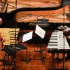 En el escenario, cuatro pianos –a cargo de Duane Cochran, Ana Gabriela Fernández, Gonzalo Gutiérrez y Józef Olechowski– dialogaron con tambores, platillos, campanas, sirenas y hasta ventiladores domésticos que, al girar frente a los micrófonos, imitaban el zumbido de los monoplanos de los años veinte.
