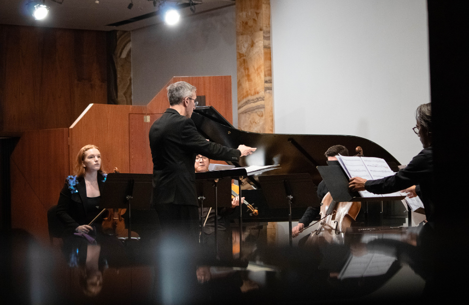 El programa iniciará con To and Fro (2010), de Rebecca Saunders, un diálogo sonoro entre violín y oboe que explora una paleta tímbrica de sonidos frágiles que emergen del silencio con movimientos ascendentes y descendentes, para finalmente desvanecerse en él. La obra fue un encargo de la Ópera Semper de Dresde.