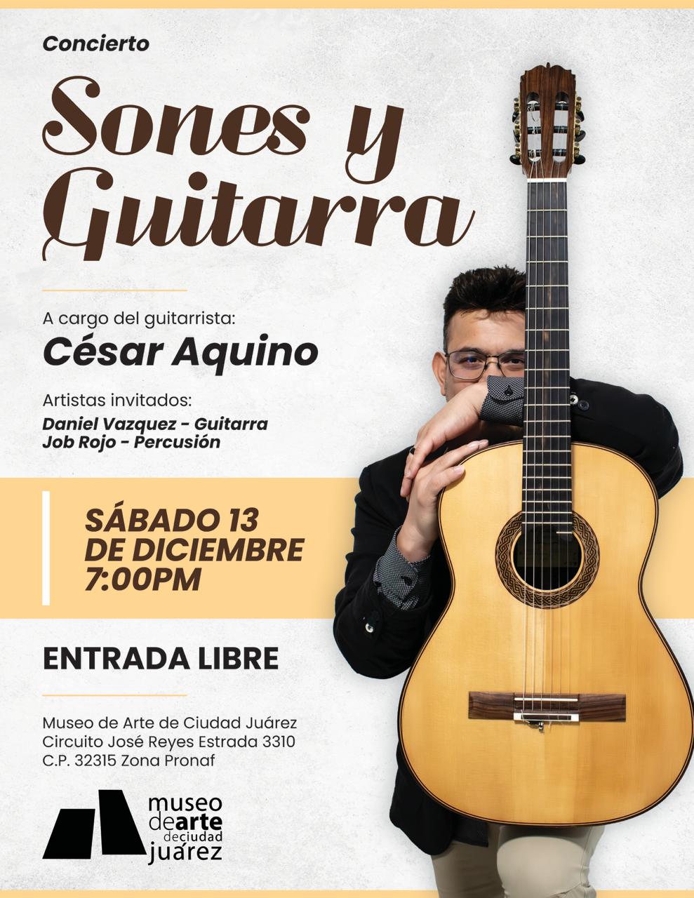 Ese mismo día, a las 19 horas, se llevará a cabo el recital Sones y guitarra, a cargo de César Aquino Pérez, con un programa que recorre obras representativas de compositores latinoamericanos y europeos, del barroco a la música contemporánea.
