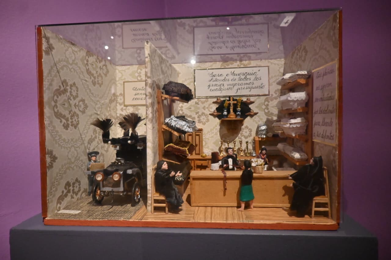 - Presenta una exposición integrada por pinturas, esculturas, fotografías, figuras de cera y objetos que expresan el sentir de la sociedad decimonónica frente al duelo