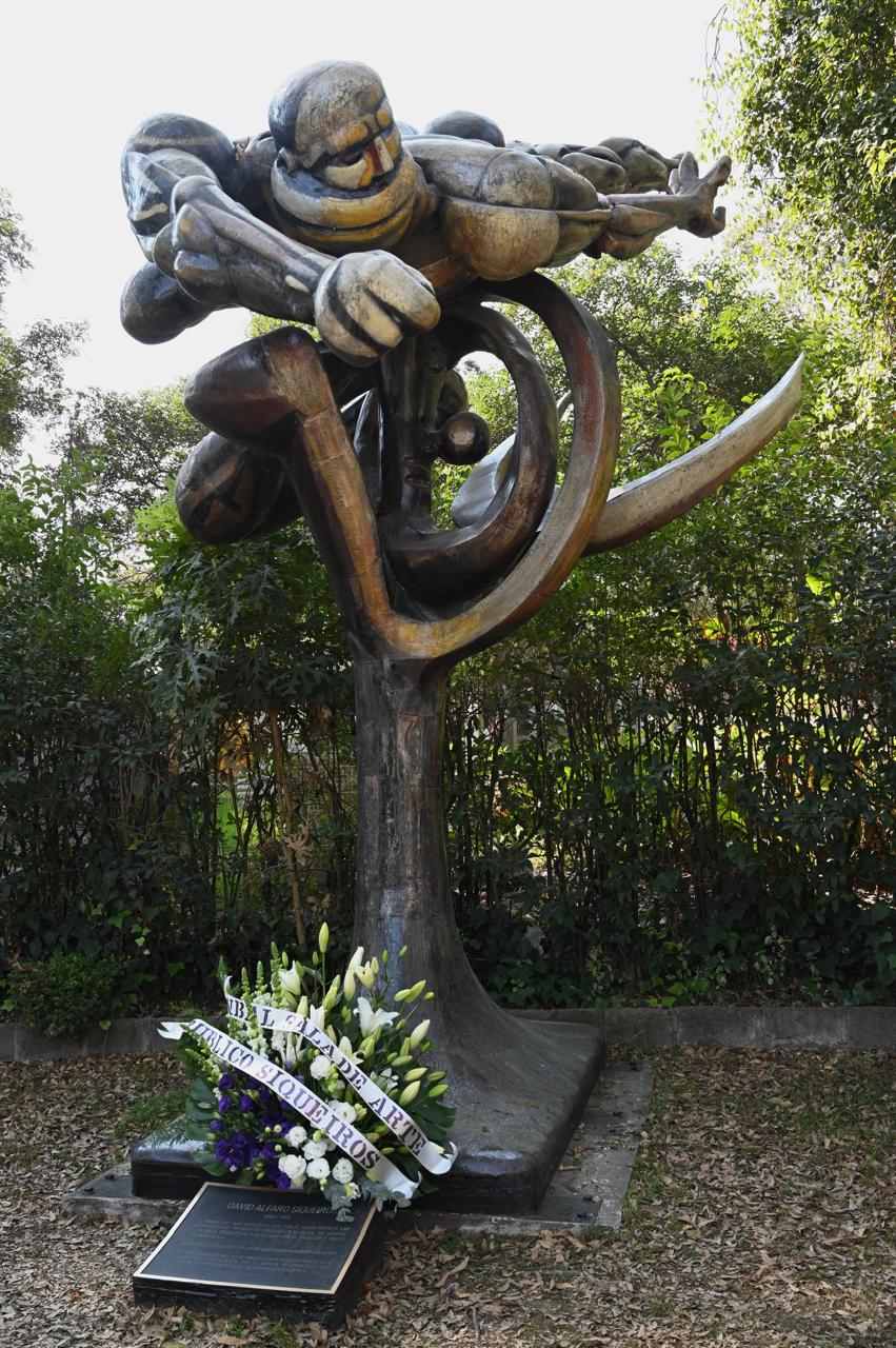 Autoridades culturales de la Sala de Arte Público Siqueiros y miembros de la comunidad artÃstica participaron en una guardia de honor y en la colocación de una ofrenda floral en la Rotonda de las Personas Ilustres del Panteón Civil de Dolores, donde Siqueiros descansa desde 1974.