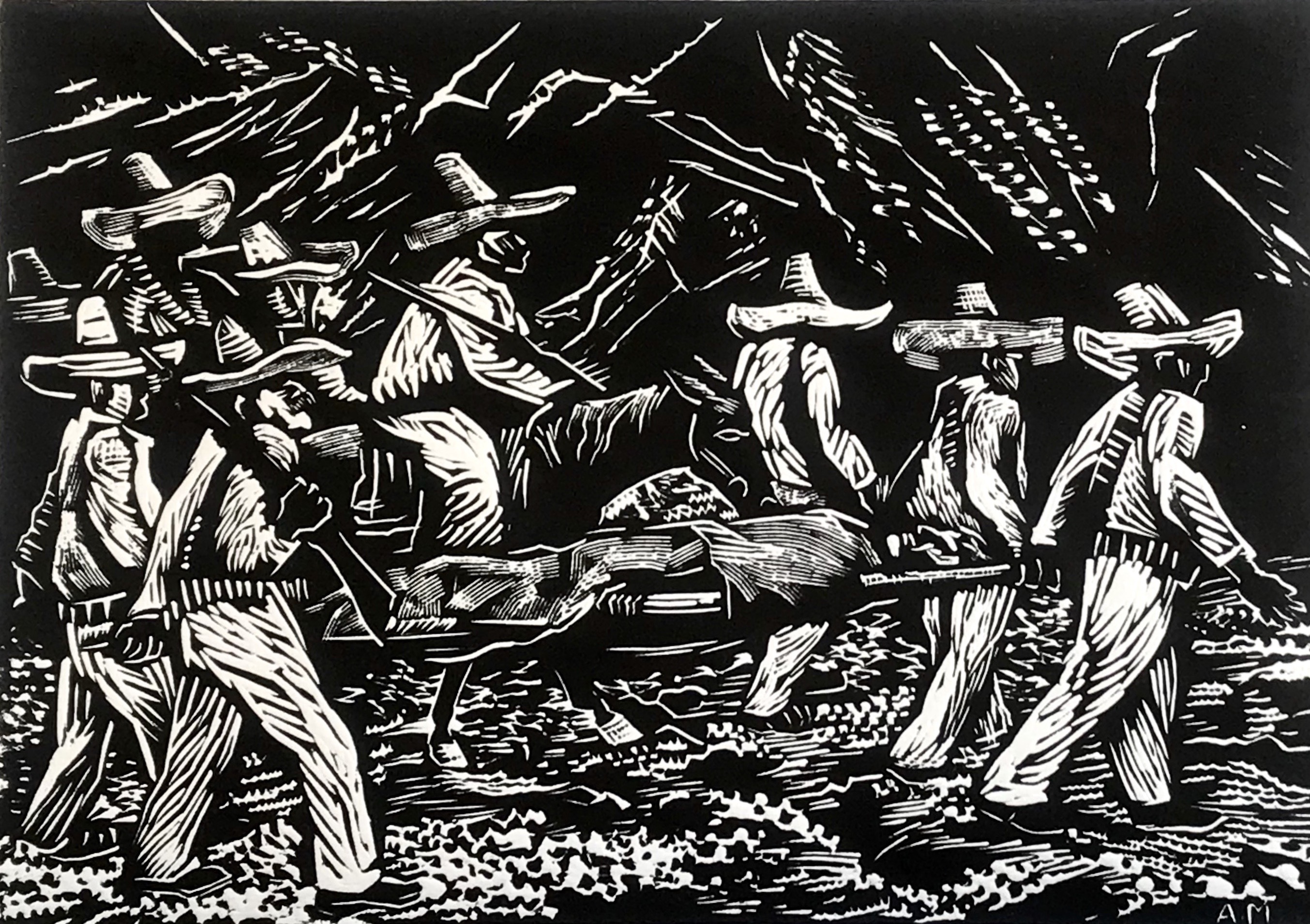 Asimismo, se exhiben el linograbado La rielera, de Adolfo Mexiac, y el aguafuerte Obregón en campaña, de Arturo GarcÃa Bustos, conformando un recorrido que revela a esta obra literaria como una poderosa fuente de inspiración artÃstica.