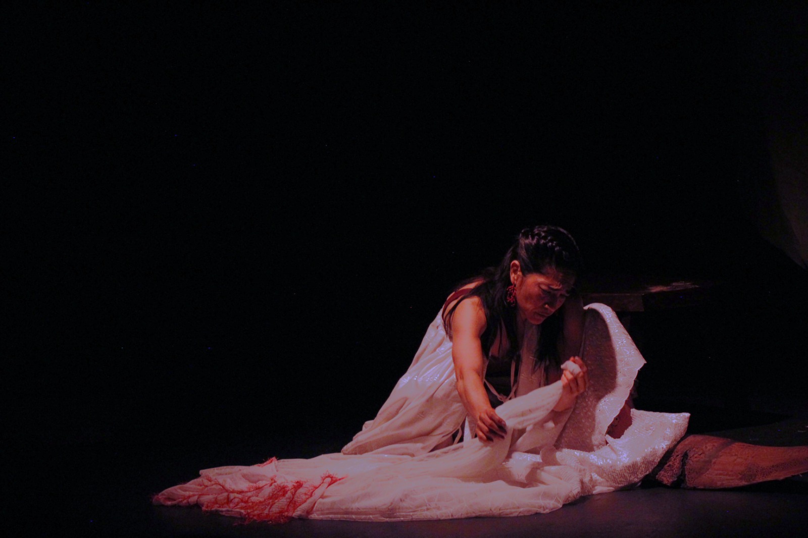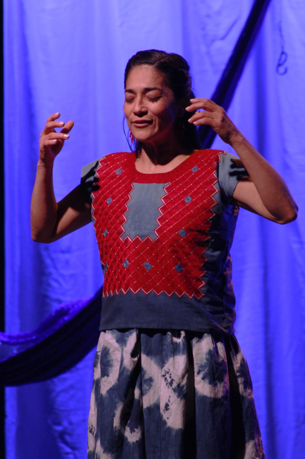 La Secretaría de Cultura del Gobierno de México y el Instituto Nacional de Bellas Artes y Literatura (INBAL), a través de la Coordinación Nacional de Teatro, en colaboración con la Compañía Espejo Mutable, presentan El huipil que oculta en la Sala Xavier Villaurrutia del Centro Cultural del Bosque, puesta en escena escrita e interpretada por Claudia Santiago, y dirigida por Nayeli Pollien Cruz y la propia autora.