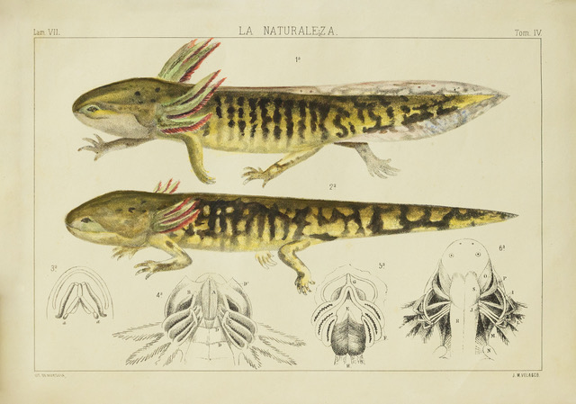 Por otro lado, destacan sus estudios minuciosos sobre el ajolote del lago de Santa Isabel, que le valieron reconocimiento internacional: “Además de los paisajes de este lugar, Velasco estudió durante 11 años la variante Siredon tigrina”, lo que llevó a Alfredo Dugès a proponer el nombre científico Ambystoma velasci, en homenaje al artista.