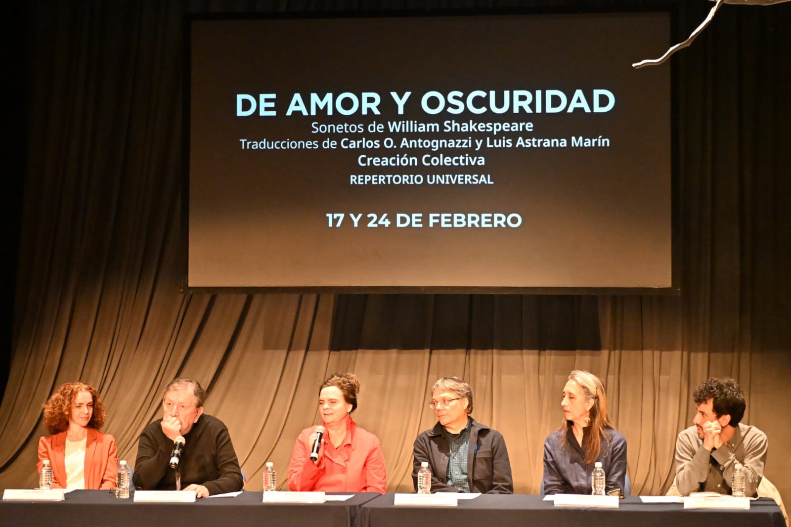 La directora artística de la CNT, Aurora Cano, detalló en conferencia de prensa, en la Sala Héctor Mendoza –acompañada por Luis Mario Moncada, coordinador nacional de Teatro, el actor Luis Rábago, la actriz Irene Repeto, la directora Esther André y el dramaturgo de la compañía, Simón Franco–, que la temporada inicia con De amor y oscuridad, creación colectiva basada en los sonetos de William Shakespeare, con traducciones de Carlos O. Antognazzi y Luis Astrana Marín, a cargo de Octavia Popesku, Irene Repeto y Marissa Saavedra, integrantes del elenco estable de la CNT.