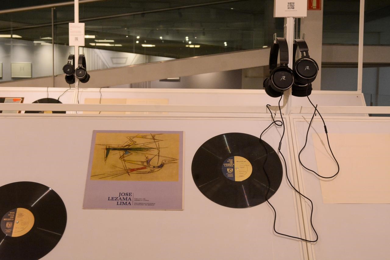 La propuesta curatorial de Daniel Valdez Puertos, doctor en Historia del Arte y actual jefe del Centro de Documentación del museo, plantea pensar la literatura como algo transmaterial, en un tiempo dominado por los formatos digitales. “Encontré en el Fondo Reservado discos en formato vinilo de la colección Voz Viva de la UNAM, reconocida en 2005 por la UNESCO como Memoria del Mundo, y quise exponerlos de forma sencilla para que el objeto hable por sí mismo”.