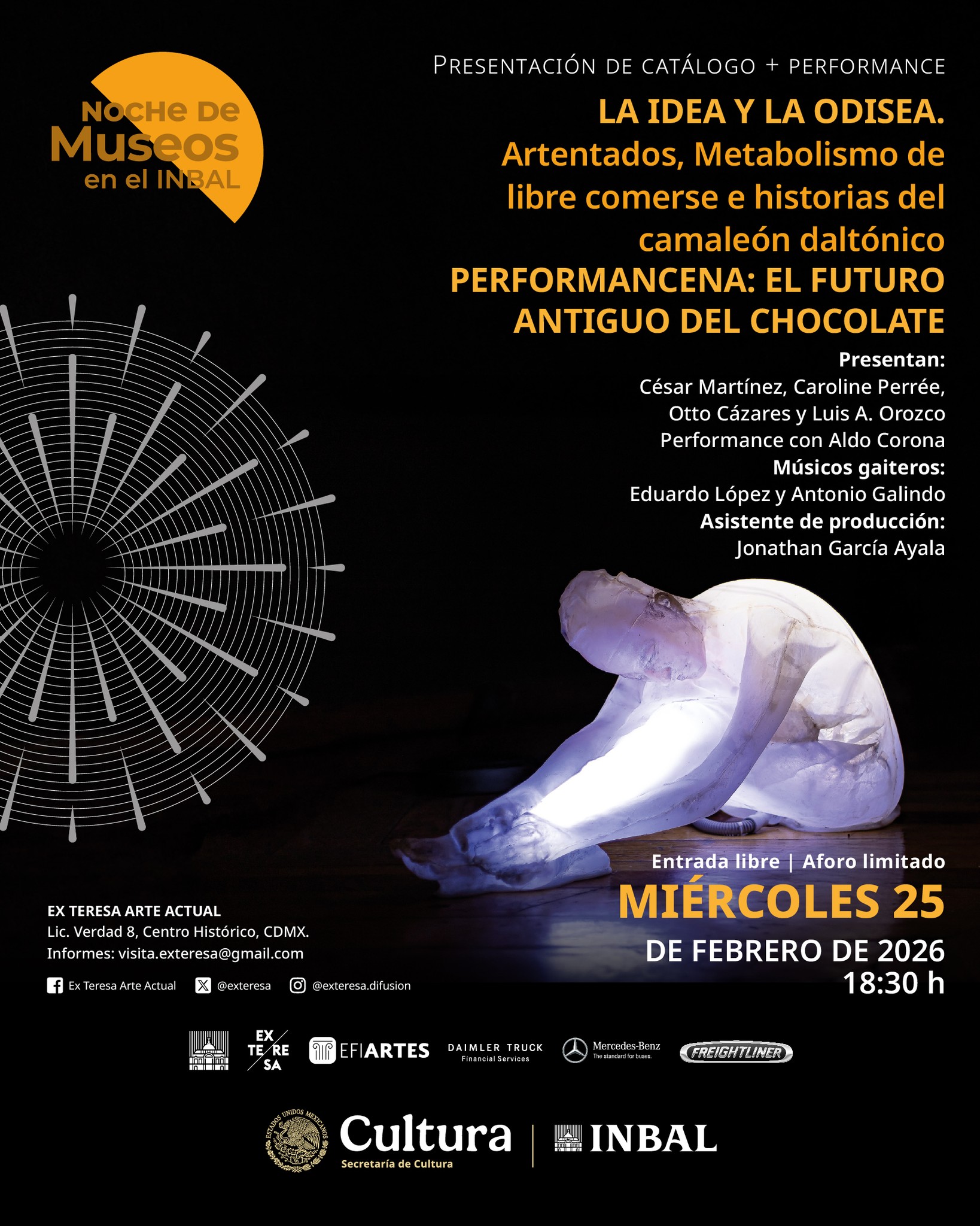 En Ex Teresa Arte Actual se presentará, a las 18:30 horas, el catálogo de la muestra La idea y La odisea, de César MartÃnez. Para celebrar esta presentación, el artista ha preparado una nueva perforMANcena titulada El futuro antiguo del chocolate, en la que participarán Caroline Perré, Otto Cázares, Luis A. Orozco y Aldo Corona, amenizada con música de gaita a cargo de Eduardo López y Antonio Galindo.
