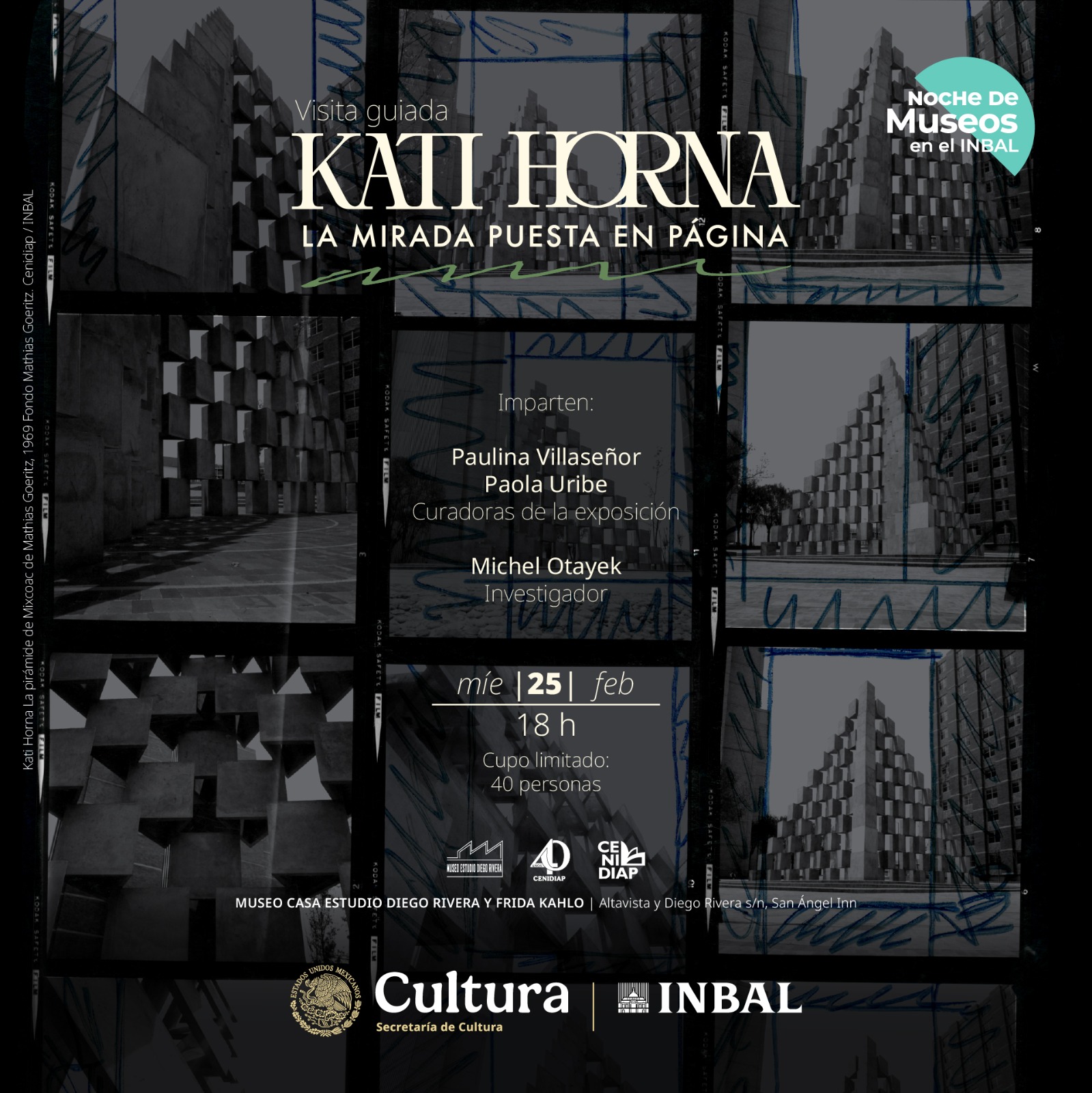 El Museo Casa Estudio Diego Rivera y Frida Kahlo ofrecerá un recorrido guiado por la exposición Kati Horna. La mirada puesta en página, a cargo de las curadoras Paulina Villaseñor y Paola Uribe, junto con el investigador Michel Otayek, con el fin de explorar el universo visual de Kati Horna, que va más allá de la captura de rostros y abarca fotografÃas de arquitectura y artes escénicas. El cupo es limitado a 40 personas.