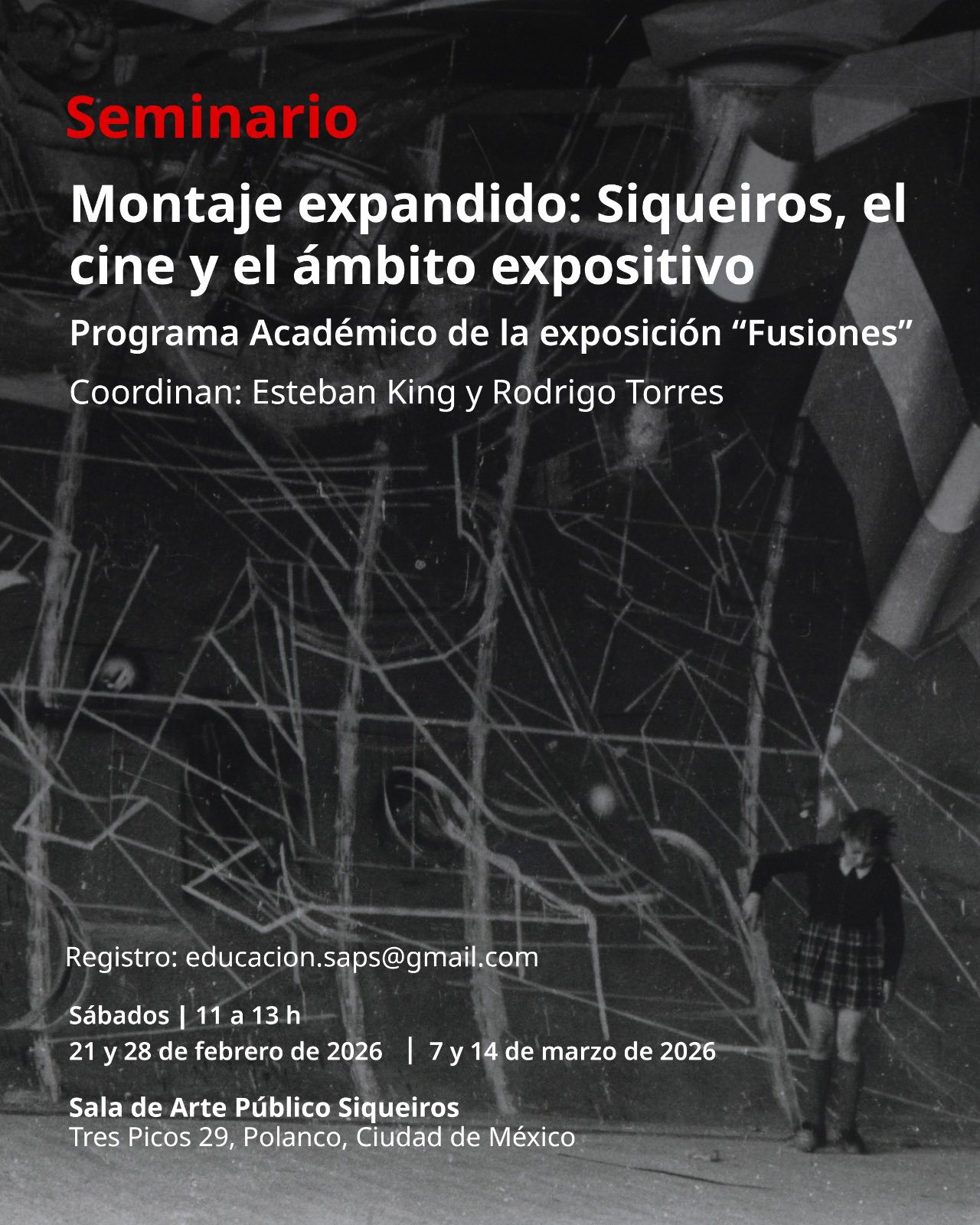 Como parte del programa académico de la exposición Fusiones, que alberga actualmente la Sala de Arte Público Siqueiros (SAPS), del Instituto Nacional de Bellas Artes y Literatura (INBAL), se llevará a cabo el seminario Montaje expandido: Siqueiros, el cine y el ámbito expositivo.