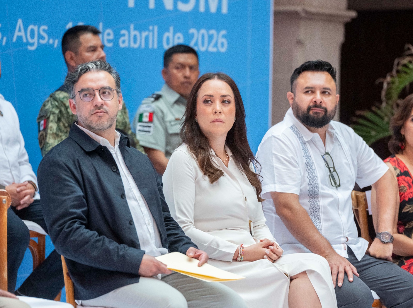 La ceremonia fue encabezada por la gobernadora de Aguascalientes, Tere Jiménez; el coordinador nacional de Artes Visuales, Gerardo Cedillo, en representación de la directora general del INBAL, Alejandra de la Paz; el director general del Instituto Cultural de Aguascalientes, Alejandro Vázquez Zúñiga; el presidente del Patronato de la Feria Nacional de San Marcos, José Ángel González, y la integrante del jurado dictaminador, Sumi Hamano Yabuta.