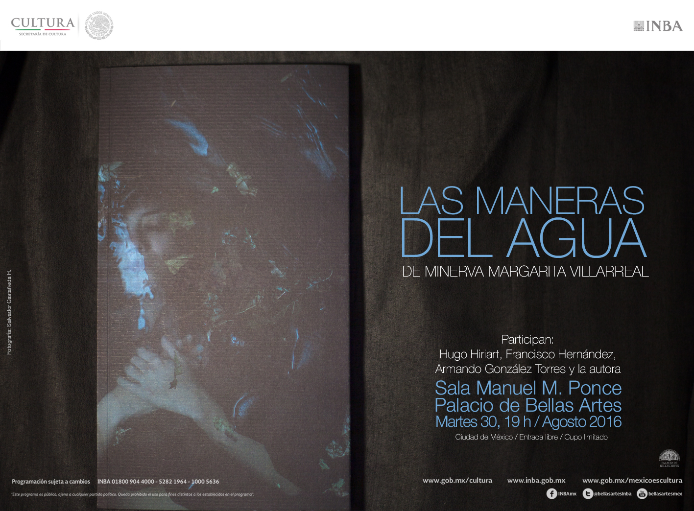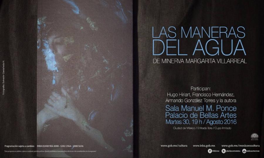 Por su originalidad y una gran intensidad lírica, Las maneras del agua, de Minerva Margarita Villarreal, fue la obra ganadora del Premio Bellas Artes de Poesía Aguascalientes 2016. La Coordinación Nacional de Literatura del Instituto Nacional de Bellas Artes invita a la presentación de este volumen, el martes 30 de agosto a las 19:00 en la Sala Manuel M. Ponce del Palacio de Bellas Artes. En este evento, la autora conversará con Hugo Hiriart, Francisco Hernández y Armando González Torres.
