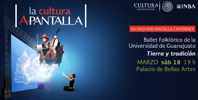 Como parte del programa La cultura a-pantalla, el sábado 18 de marzo a las 19:00 el público podrá disfrutar, de manera gratuita, el espectáculo Tierra y tradición, a cargo del Ballet Folklórico de la Universidad de Guanajuato.