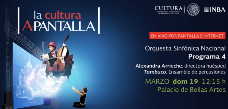 - Y el domingo 19 a las 12:15 se transmitirá el cuarto programa de la OSN, dirigida por Alexandra Arrieche y acompañada por Tambuco. Ensamble de Percusiones de México