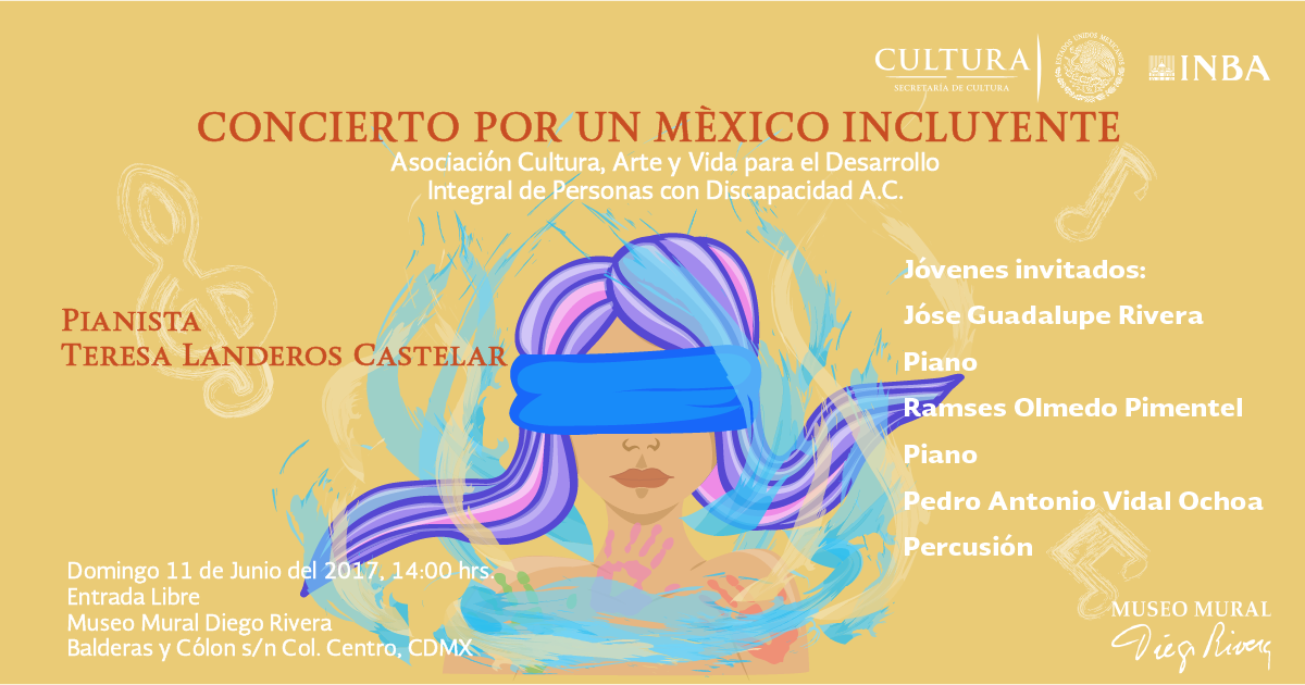 Esta presentación se realizará gracias a la colaboración de la Asociación Cultura, Arte y Vida para el Desarrollo Integral de Personas con Discapacidad A.C. y la Coordinación Nacional de Música y Ópera del Instituto Nacional de Bellas Artes (INBA).